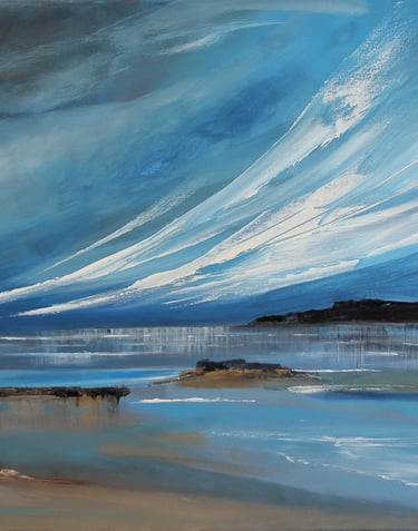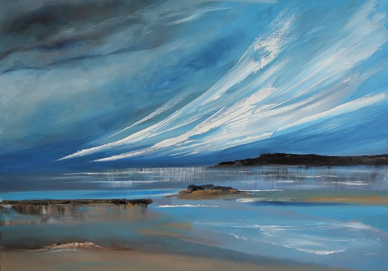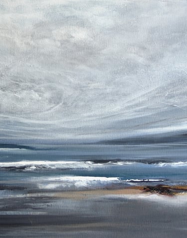 La tensión entre la quietud del paisaje y la fugacidad del momento. El agua y el cielo se funden en un juego de luces, sombras e inminencia.