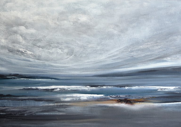 Pinceladas expresivas que interpretan el paisaje costero invernal con una fuerte carga subjetiva