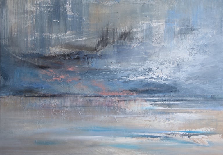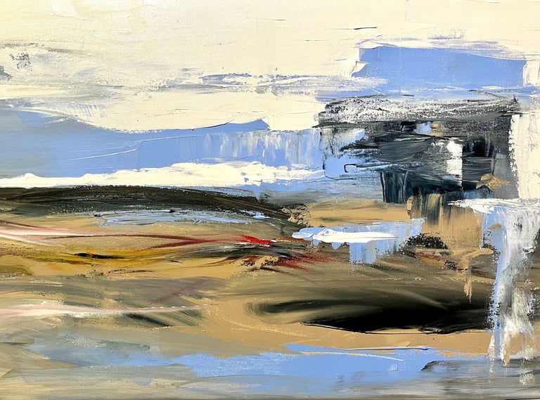 Pinceladas expresivas que interpretan el paisaje costero invernal con una fuerte carga subjetiva