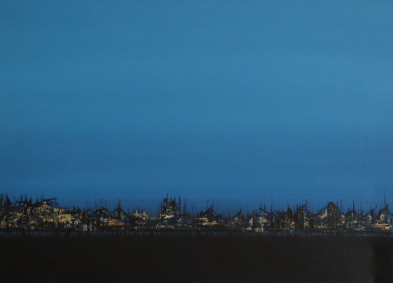 La tensión entre la quietud del paisaje y la fugacidad del momento. El agua y el cielo se funden en un juego de luces, sombras e inminencia.